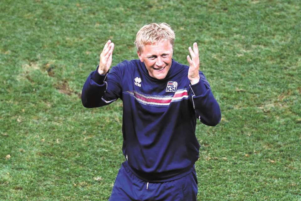 המאמן השבדי יסיים את דרכו לאחר יורו 2016, ואיסלנד תופקד בידיים הבטוחות של האלגרימסון. "אנחנו עצובים להיפרד מאחד מהם, אבל שמחים להישאר עם השני", התייחס אתמול לנושא הקפטן גונארסון. כשניסה להסביר את החלוקה בין השניים, סיפר שחקנה של קארדיף שלגרבאק הוא זה שנותן את הביטחון הדרוש והמוטיבציה, כאשר האלגרימסון הוא זה שאחראי לצד הטקטי והמקצועי, נאמן לסטטיסטיקות ולתוכנות מחשב. "אין אצלנו שום דבר מקרי", הסביר עם חיוך כמובן; "הכל אצלנו מתוכנן לפרטים הקטנים ומכאן נובע הביטחון שלנו".