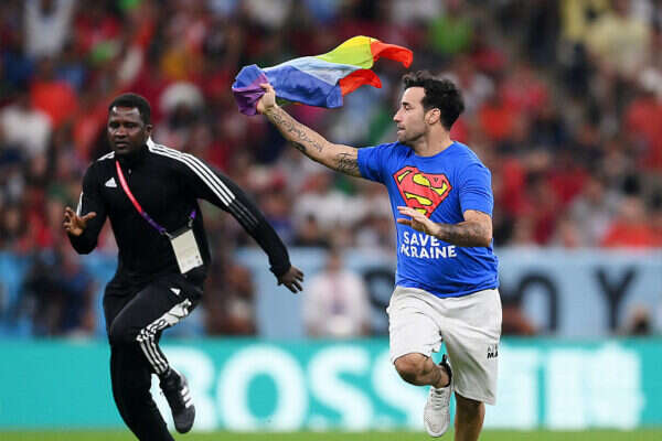 האוהד שפרץ למגרש עם דגל הגאווה בצבעי הקשת בענן, במהלך הניצחון 0:2 של פורטוגל מול אורוגוואי אתמול (שני) במונדיאל, הוא שחקן כדורגל שעשה זאת מספר פעמים בעבר.