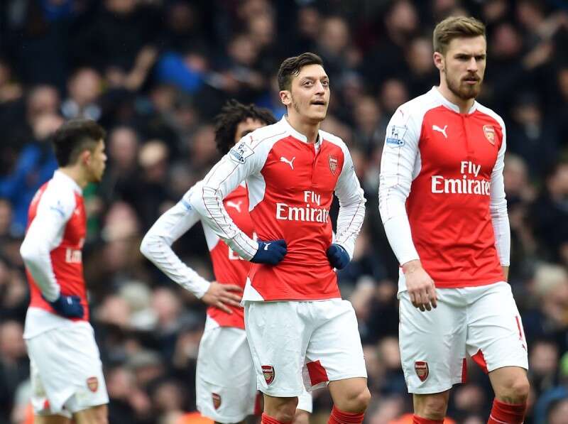 שחקני ארסנל מאוכזבים מתוצאת הסיום בדרבי הלונדוני // צילום: אי.פי.איי