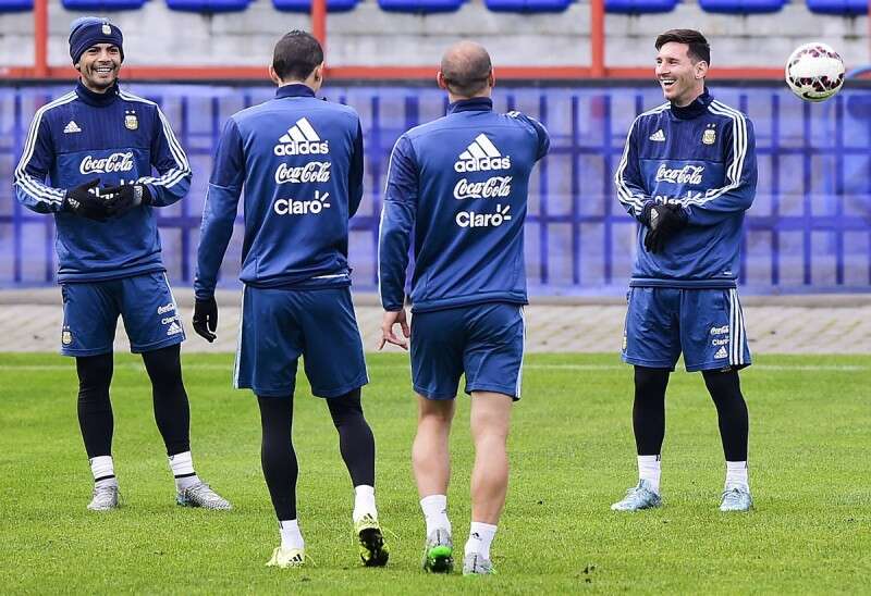 מסי (מימין). מחוייך באימון ארגנטינה // צילום: איי.אף.פי