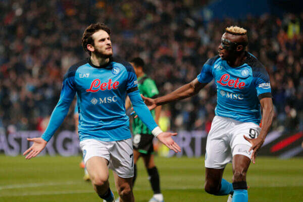 הערב (שישי), החבורה בתכלת לא עצרה במסעה לתואר גם בביקורה במגרשה של ססואולו וניצחה 0:2, כשחביצ'ה קבארצ'חליה וויקטור אוסימן כבשו כבר במחצית הראשונה.