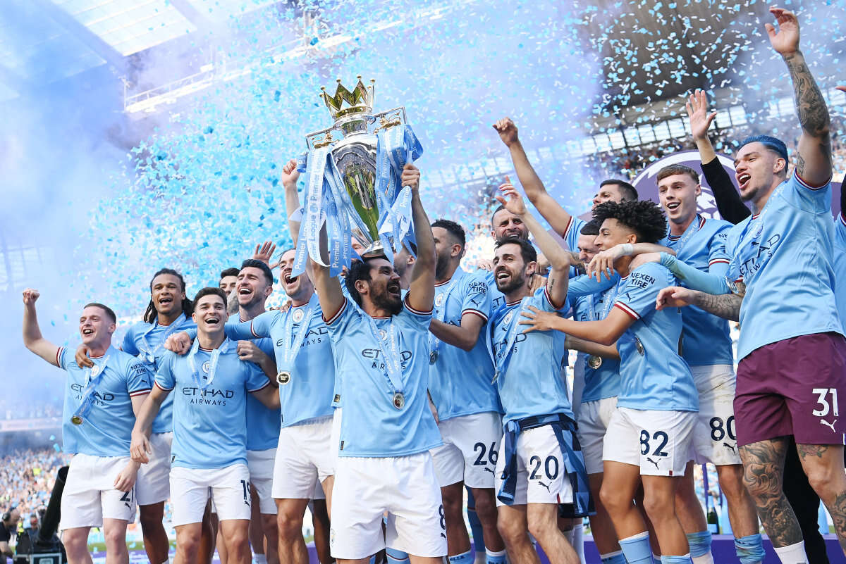 יום לאחר ההפסד של ארסנל מול נוטינגהאם פורסט שהעניק למנצ'סטר סיטי אליפות חמישית בששת העונות האחרונות, התכולים חגגו היום (ראשון) עם הקהל הביתי תואר נוסף בפרמייר ליג באופן רשמי עם הנפת הגביע ע"י הקפטן אילאקי גונדואן.