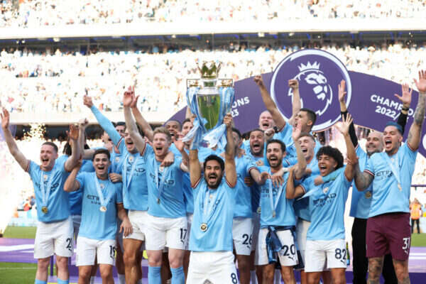 יום לאחר ההפסד של ארסנל מול נוטינגהאם פורסט שהעניק למנצ'סטר סיטי אליפות חמישית בששת העונות האחרונות, התכולים חגגו היום (ראשון) עם הקהל הביתי תואר נוסף בפרמייר ליג באופן רשמי עם הנפת הגביע ע"י הקפטן אילאקי גונדואן.