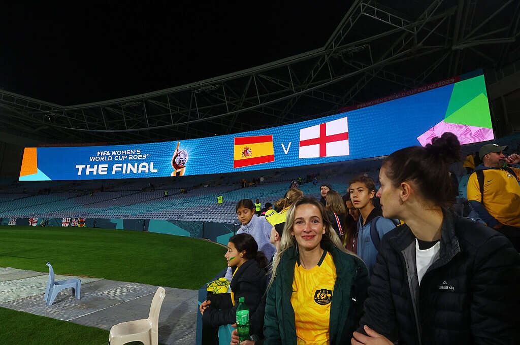 בפעם החמישית בחודש האחרון יתמלא האצטדיון בסידני ב־75,784 צופות וצופים. רובם אוסטרלים שקיוו כי ה"מטילדות" יעפילו לגמר, אבל לדאבונם אנגליה ניצחה את אוסטרליה 1:3 בחצי הגמר. יום לפני כן ספרד ניצחה בחצי הגמר את שבדיה 1:2.