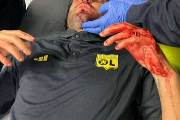 אירוע אלימות חמור בכדורגל הצרפתי: מאמן ליון פאביו גרוסו נפגע בראשו ובפניו לאחר שאוהדי מארסיי השליכו אבנים על האוטובוס שבו נסע יחד עם שחקניו לקראת המשחק הערב (ראשון) בין שתי הקבוצות.