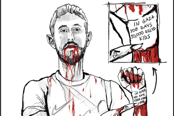 בנוסף, ברשתות התפשטה במהירות קריקטורה מזעזעת של יחזקאל המחזקת את תחושת הציבור הטורקי נגדו כשהוא נראה מטפטף דם ועל התחבושת המצויירת נכתב: "ב-100 ימים בעזה נרצחו 10,000 ילדים".