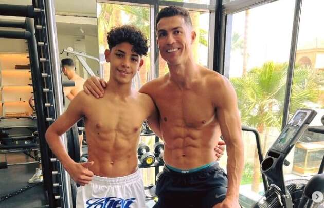 כוכב הכדורגל כריסטיאנו רונאלדו פרסם היום (חמישי) ברשתות החברתיות תמונה שלו ושל בנו בן ה-13 מחדר הכושר הביתי. בתמונה שהפכה לוויראלית, נראים השניים מחוייכים וללא חולצות כשהם לובשים רק מכנסי אימון.
