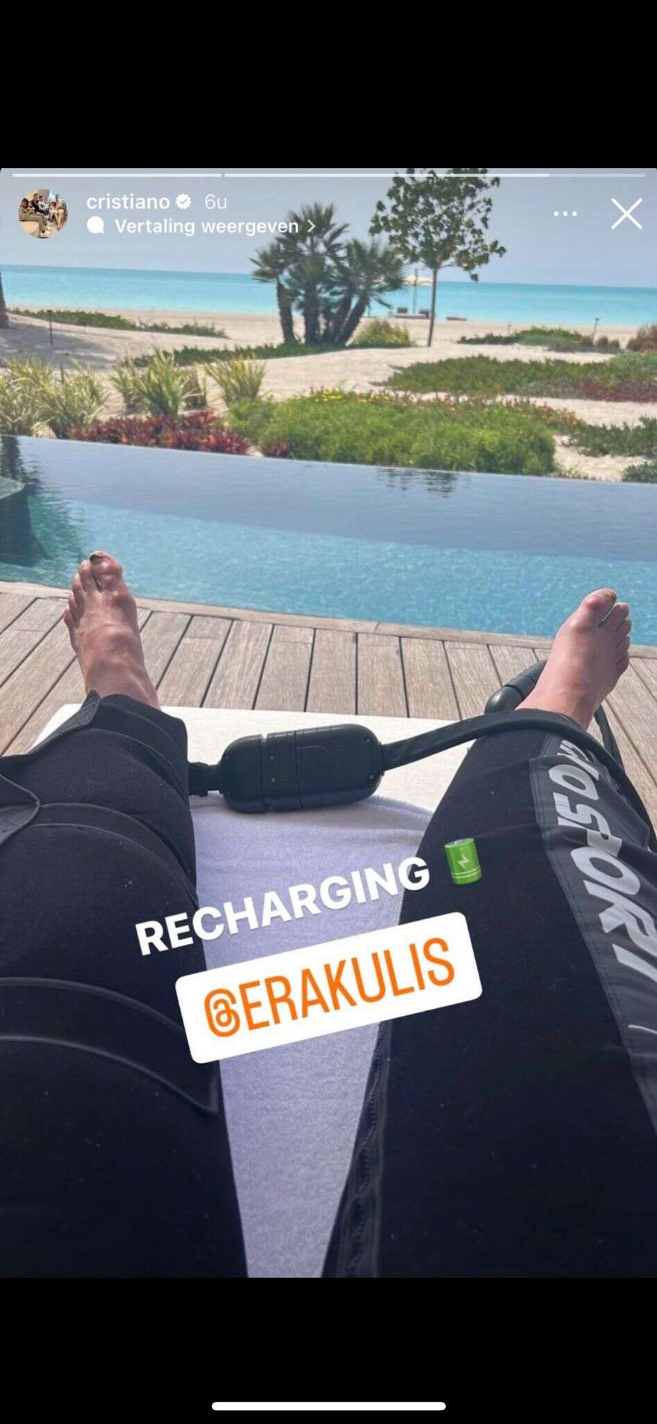לאחר שהיה בפסגת הענף במשך יותר משני עשורים, שגרת הכושר והשיקום של הכוכב הפורטוגלי מוכרת לכולם. אבל כפי שגילו מעריצים רבים, לקריירה הנוצצת שלו יש מחיר: והוא מצב רגליו שהביאו לו כל כך הרבה הצלחה. רונאלדו פרסם תמונה שלו במכנסיים מיוחדות, שנועדו להאיץ את ההתאוששות לאחר משחקים. התמונה לכדה את רגליו העייפות, המכות והנפוחות, שגרמו לסערה רבה ברשת.