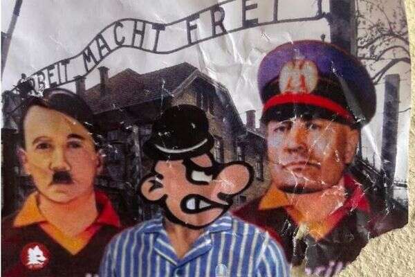 אנטישמיות מזעזעת לפני הדרבי של רומא. ארבעה ימים לפני הקרב הגדול של עיר הנצח, אוהדי רומא הפיצו סטיקרים שבהם נראים אדולף היטלר ובניטו מוסוליני לובשים חולצות רומא משני צידיו של מר אנריץ', הדמות האייקונית של אוהדי לאציו לבושה במדי אסיר יהודי בכניסה למחנה אושוויץ.
