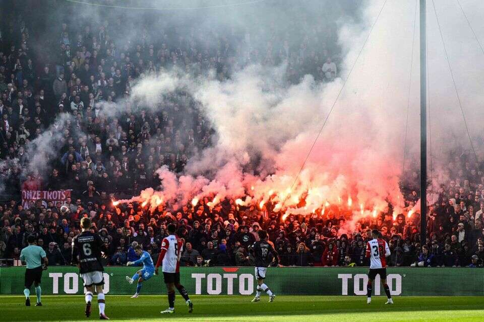 Een doek in brand tijdens de bekerfinale in het Feyenoord-vak. Nederland zou Nederland niet zijn als we weer flink gaan overdrijven met zijn allen, de spelers moeten nu zelfs van het veld… #feynec pic.twitter.com/FhvFuBCm47