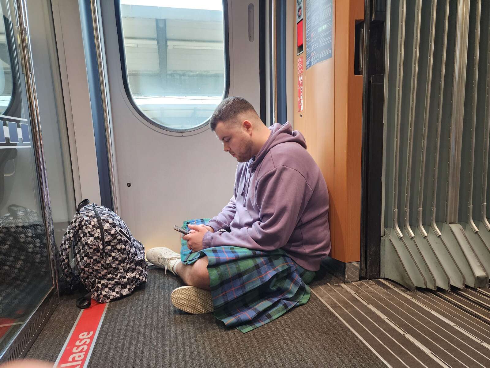 הרכבת שלי, שהייתה אמורה להיות ישירה ממינכן לדיסלדורף, בוטלה, אז נאלצתי לעלות על אחת אחרת, כזאת שעוצרת בשטוטגרט. בגלל שעליתי עליה רגע לפני סגירת הדלתות לא באמת היה לי מקום לשבת, אז התיישבתי על הרצפה בסמוך לאחת מדלתות הכניסה. שאלתי את עובדת הרכבת אם אין מצב לשדרג אותי לאחת מהמחלקות הראשונות והיא אמרה "לא" עם מבט של מקפיא. כזה של סאוטר - חברה מקומית עם מוצרי איכות שאפשר להיתקל בהם גם בישראל.