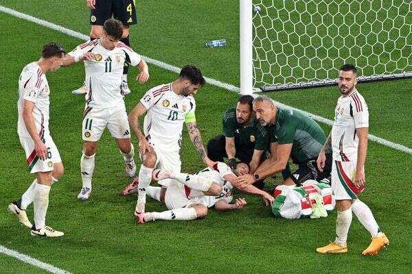 רגעים מלחיצים מאוד על הדשא בשטוטגרט. ברנבאש וארגה, חלוץ נבחרת הונגריה, עובר טיפול רפואי לאחר נפילה מלחיצה במיוחד לאחר שעלה לנגוח כדור חופשי שהוגבה אליו והתנגש בין היתר עם שוער נבחרת סקוטלנד, אנגוס גאן. מצבו עדיין לא ברור.