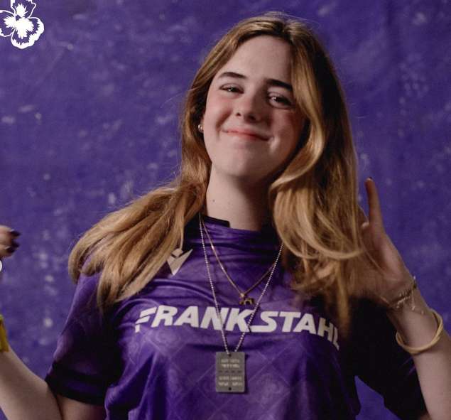בתמונה נמצאת אלה בת ה-15, צעירה יהודייה שסבה בוז'ו גוטמן היה ניצול שואה ששרד את אושוויץ ולימים הפך לנשיא המועדון. מלבד החולצה הסגולה, אלה ענדה גם את הדיסקית הקוראת לשחרור החטופים הישראלים בשבי חמאס ועל ידה היה הצמיד הצהוב המזוהה עם המאבק לשחרורם.
