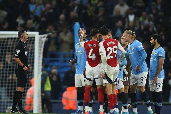 המפגש אתמול (ראשון) בין מנצ'סטר סיטי לארסנל על פסגת הפרמייר ליג היה יצרי במיוחד, וזה רק מוכיח כי אפשר להכתיר את המשחקים בין הקבוצות כיריבות של ממש. התותחנים שהובילו 1:2 בהפסקה שיחקו את כל המחצית השנייה אחרי שלאנדרו טרוסאר הורחק, וג'ון סטונס השיג 2:2 עבור סיטי עם שער שוויון בדקה ה-98. אחרי המשחק שני הצדדים תקפו את השופט מייקל אוליבר, כשהתכולים ביקרו גם את הגישה עימה הלונדונים הגיעו למשחק.