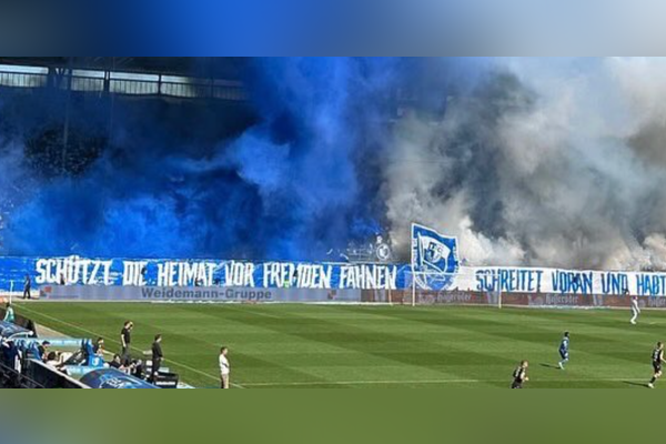 עם זאת, נראה שיש גם מי שהולכים למשחקים עם מטרה אחרת לגמרי, כפי שנחשף במשחק הליגה השנייה בסוף השבוע האחרון בין מגדבורג לקרלסרוהה. האולטראס של מגדבורג הרשו לעצמם לפרוש שלט ארוך ובולט, ובו מצוטטת שורה מתוך שירה של להקת "ריין נה ווה פלאס" הלאומנית, שכונתה ב"בילד" הלהקה הנאצית.