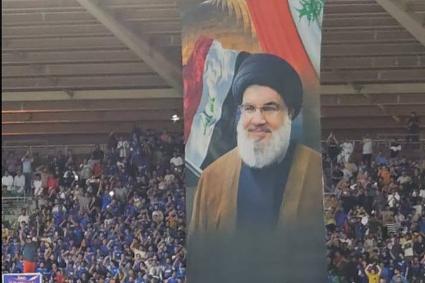 בתוך כך, בימים האחרונים נראה במהלך משחקי הכדורגל בעיראק טרנד חדש שמטרתו לעשות כבוד לארכי-מחבל חסן נסראללה, שחוסל לפני כשבוע ע"י צהל במתקפה ברובע הדאחייה בביירות, בירת לבנון. בשלושה אצטדיונים הונפו בימים האחרונים דגלי פריסה עם דיוקנו של רב המרצחים. פרט לדגלים הגדולים עם דיוקנו של נסראללה, נקראו קריאות נקמה בישראל, ואף ערכו דקות דומיה מאולתרות למנהיג ארגון הטרור העומד כבר שנים בראש הפוליטיקה במדינה הצפונית לישראל.