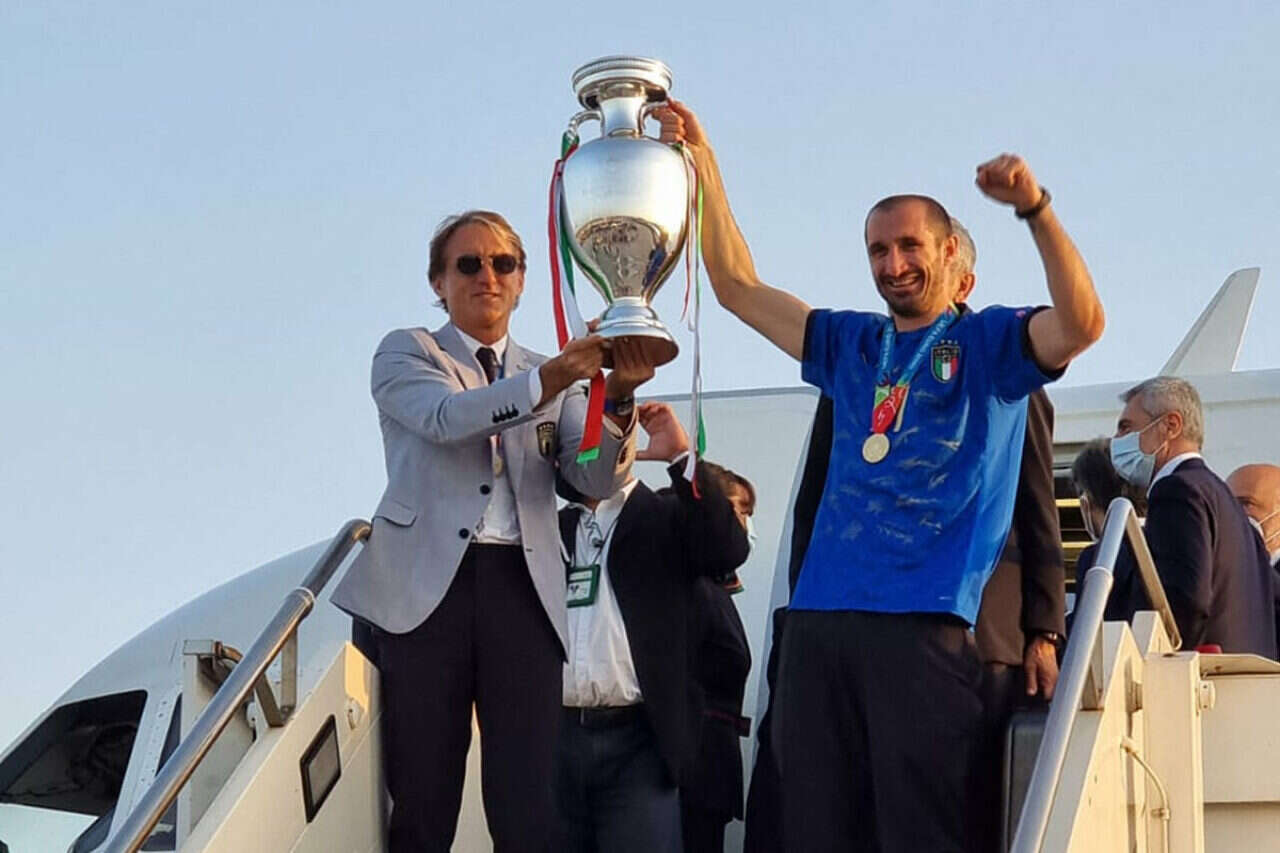 נבחרת איטליה נחתה הבוקר (שני) ברומא, כמנצחת הגדולה של יורו 2020 והביאה יחד איתה את הגביע הנכסף, לו חיכו האוהדים והמדינה כל כך הרבה זמן.