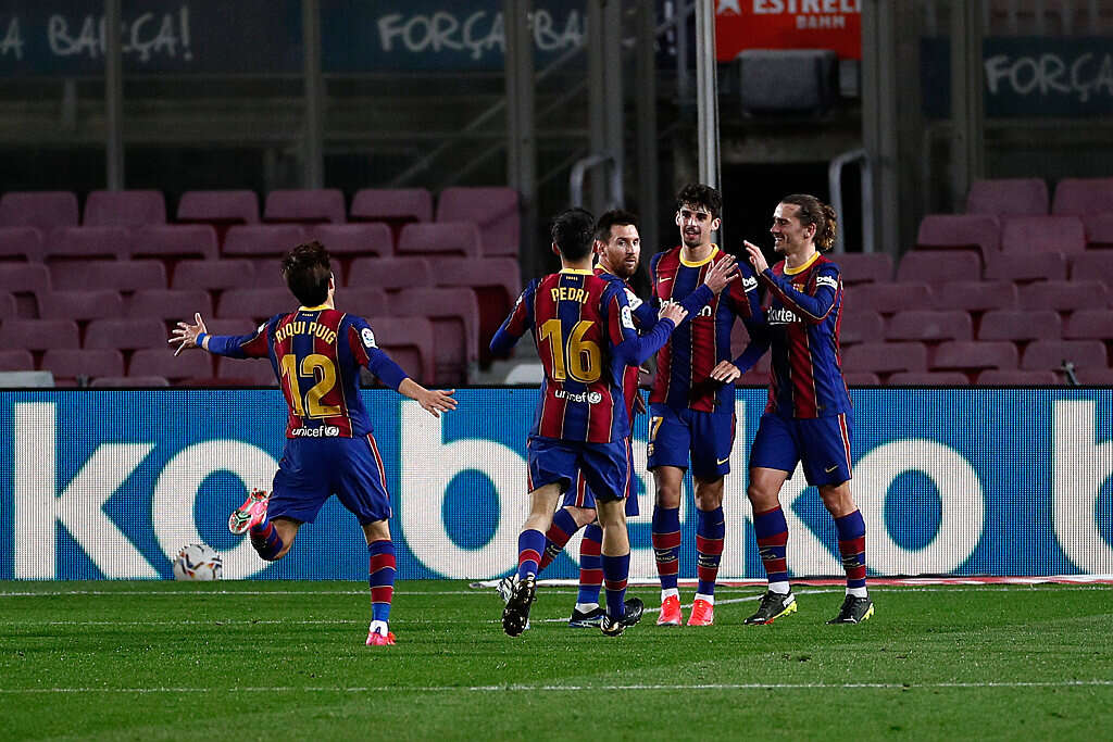 שלושה ימים לפני המפגש עם פריז סן ז'רמן בשמינית גמר ליגת האלופות, ברצלונה ניצחה 1:5 את אלאבס בקאמפ נואו. טרינקאו שבמחזור הקודם כבש שער בכורה בליגה, הכפיל את מאזן השערים האישי שלו בדקה ה-29 אחרי בישול של אלאיש מוריבה בן ה-18, בהופעת הבכורה שלו בליגה. 7 דקות לאחר מכן שער של ליאו מסי נפסל לאחר בדיקת VAR בשל נבדל, אבל הפרעוש חיכה לתוספת הזמן של המחצית הראשונה כדי לעשות 0:2 עם שער מדהים מחוץ לרחבה.