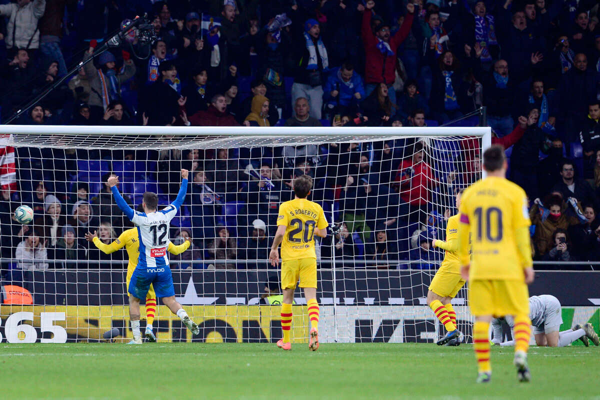 הדרבי של ברצלונה נפתח דווקא עם שער מפתיע של המארחת, בחסות דויד לופס, שהחליק בנגיחה לפינה הרחוקה 0:1 מפתיע לאספניול. עד ההפסקה אומנם ברצלונה לא מצאה את הרשת, אבל השוויון שלה הגיע חמש דקות בתוך המחצית השנייה - אלבה הגביה כדור מדויק סוארס נכנס בין שני הבלמים ובנגיעה קבע 1:1 מוצדק. כעבור 9 דקות, הושלם המהפך הגדול של בארסה. סוארס הגביה נהדר עם הצד החיצון של הנעל, וידאל הגיע ונגח פנימה את השני של ברצלונה. הושלם המהפך.