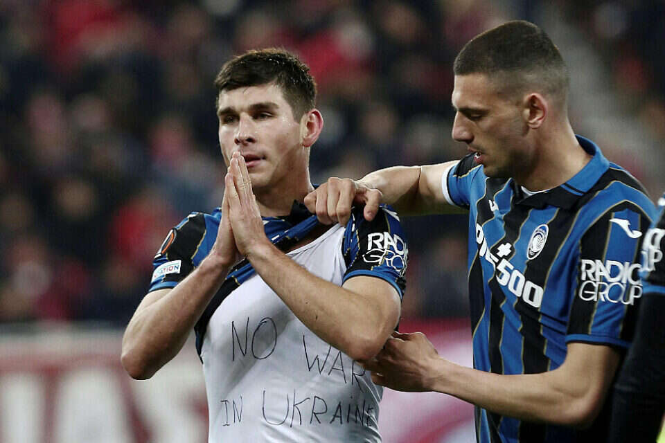 אטאלנטה היא הקבוצה היחידה בסריה אה שבסגל שלה יש שחקן מאוקראינה ושחקן מרוסיה. השבוע, במקביל לפלישה של הרוסים לאוקראינה, שני השחקנים האלה כבשו שערים. רוסלן מלינובסקי האוקראיני עשה זאת פעמיים, בניצחון 0:3 על אולימפיאקוס בליגה האירופית, וחשף חולצה הקוראת להפסקת המלחמה. אלכסיי מירנצ'וק הרוסי כבש בניצחון 0:4 על סמפדוריה בליגה, ולא חגג, אף שהיה זה שער ראשון שלו זה חודשיים וחצי.