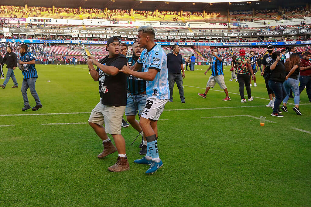 They had to take off the little boys shirt so he wouldn’t be attacked by the fans of the other team. The scenes out of the Atlas vs Queretaro game are gruesome. pic.twitter.com/1xb5ZtvWDw