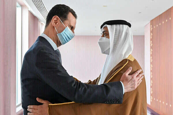 בנסיעתו הראשונה לאיחוד האמירויות מאז החלה מלחמת האזרחים בסוריה לפני 11 שנים, אסד נפגש בשבוע שעבר כמה אישים משפיעים. בין היתר הוא צולם יחד עם השייח' מנצור, המכהן סגן ראש ממשלת איחוד האמירויות.