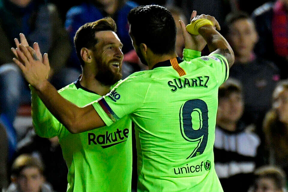 ברצלונה סידרה לעצמה הערב (ראשון) פער של שלוש נקודות בפסגת הליגה הספרדית אחרי 0:5 בחוץ על לבנטה. ליאו מסי שוב נצץ מעל כולם, כשהרשית שלוש פעמים בתוך 17 דקות ורשם שלושער מספר 43 בקריירה (רונאלדו עשה זאת 44 פעמים במדי ריאל).