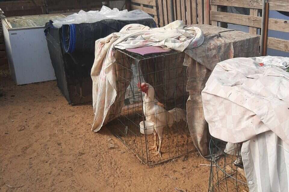 תרנגול כלוא בכלוב. צילום: משרד החקלאות