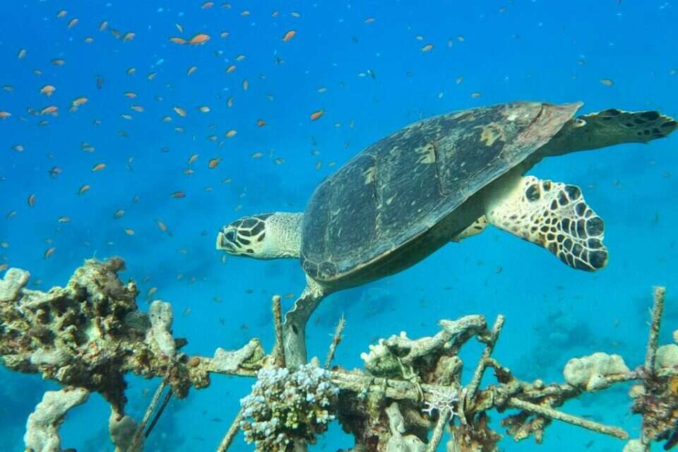צבת ים קרנית, מין שבשל מיעוט הפרטים בו כמעט ואינו נוכח באזור, נצפתה מחפשת אחר מזון בסמוך למצפה התת-ימי בעיר • ככל הנראה, הצבה נולדה בפרויקט הרבייה לצבי ים של הפארק