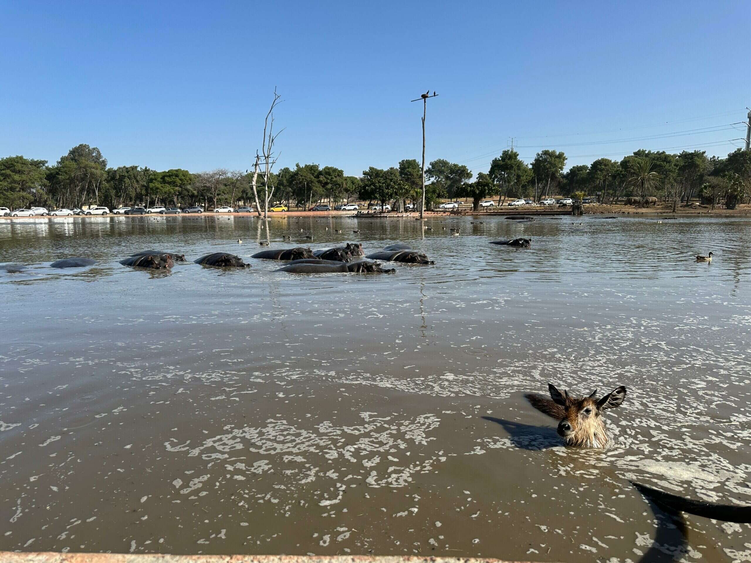אירוע עצוב התרחש היום (שבת) בסוואנת ההיפופוטמים בספארי, כאשר אנטילופה מסוג קובוס מים צעיר נדחק על ידי בעל חיים גדול ממנו אל תוך האגם. ההיפופוטמים, שפעלו בהתאם לאינסטינקטים הטבעיים שלהם להגנה על הטריטוריה, התקרבו לקובוס וחסמו את אפשרויות התנועה שלו.