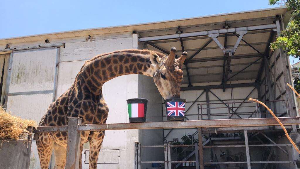 שלי, ג'ירף אפריקני בן 15, לא מתיימר להיות פול התמנון, אבל את תוצאות משחק גמר היורו שיתקיים הערב, המטפלים בספארי החליטו לבחון דרך התיאבון שלו. הם נתנו לו תערובת מזינה בתוך שני דליים שעל כל אחד מהם הודבק דגל של שתי המדינות המתחרות – איטליה ואנגליה.