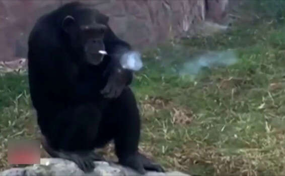 צילום הוידאו של השימפנזה המעשנת הפך לויראלי ברשתות החברתיות בסין. בסרטון נראית הקופה מרימה סיגריה דולקת מהדשא, ולוקחת ממנה שאיפה מלאה, בדיוק כמו שבני אדם עושים. צוות גן החיות טען כי לעיתים מבקרים בגן החיות זורקים סיגריות לשימפנזות, וכי החכמות שבהן לומדות במהירות להרים את הסיגריות ולהשתמש בהן כפי שבני אדם נוהגים.