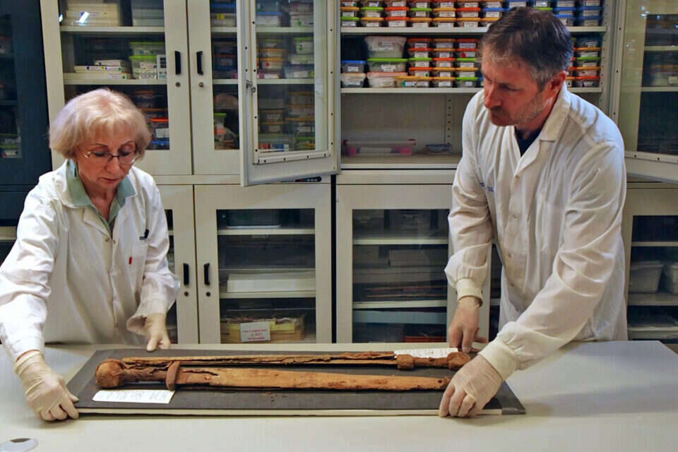 החרבות הוצאו בזהירות מהסדק והועברו תוך זמן קצר לטיפול ושימור בתנאי בקרה אקלימית במעבדות רשות העתיקות. בבדיקה ראשונית של המכלול, מסתבר כי מדובר בחרבות תקניות אשר היו בשימוש חיילי הצבא שהוצבו בארץ ישראל בתקופה הרומית.