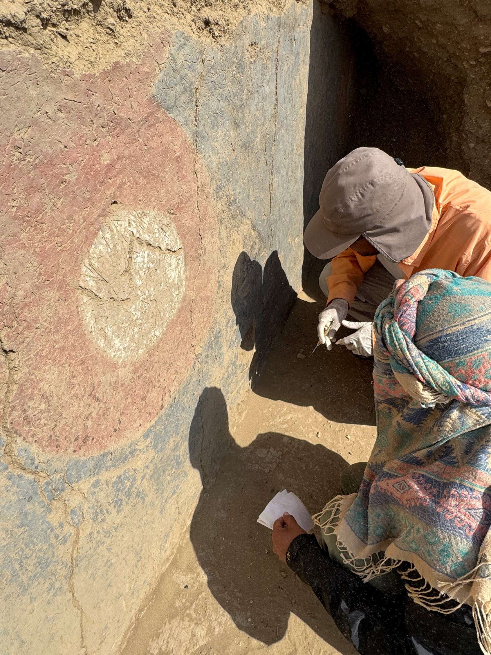 גם ציור של דמות מיתולוגית נמצא במקום. החוקרים במקדש // צילום: רויטרס