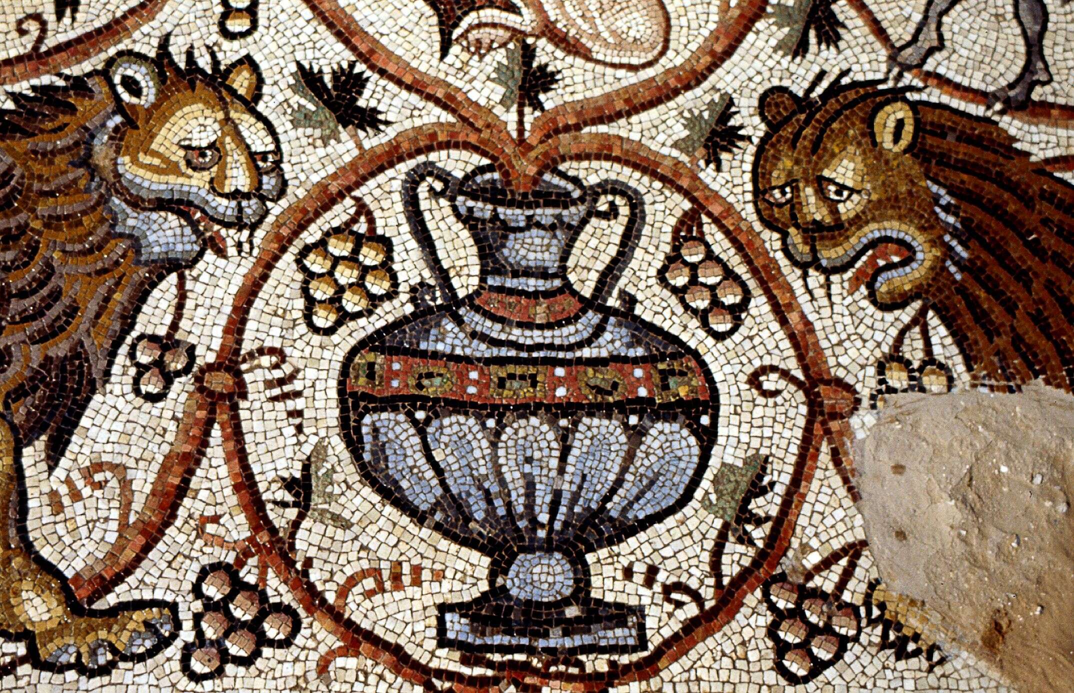 "מדובר בפסיפס ייחודי מהתקופה הביזנטית (324–638 לספירה)", אומר לנדר. "הוא מציג 55 מדליונים עשירים בפרטים - דמויות מיתולוגיות, סלי פירות, בעלי חיים אקזוטיים, סצנות מחיי היומיום, סצנות ציד ועוד. הפסיפס נעשה ביד אמן; הוא מורכב מאבני פסיפס קטנות במגוון צבעים, ושולבו בו זכוכית וחרסים על מנת להעניק גיוון".