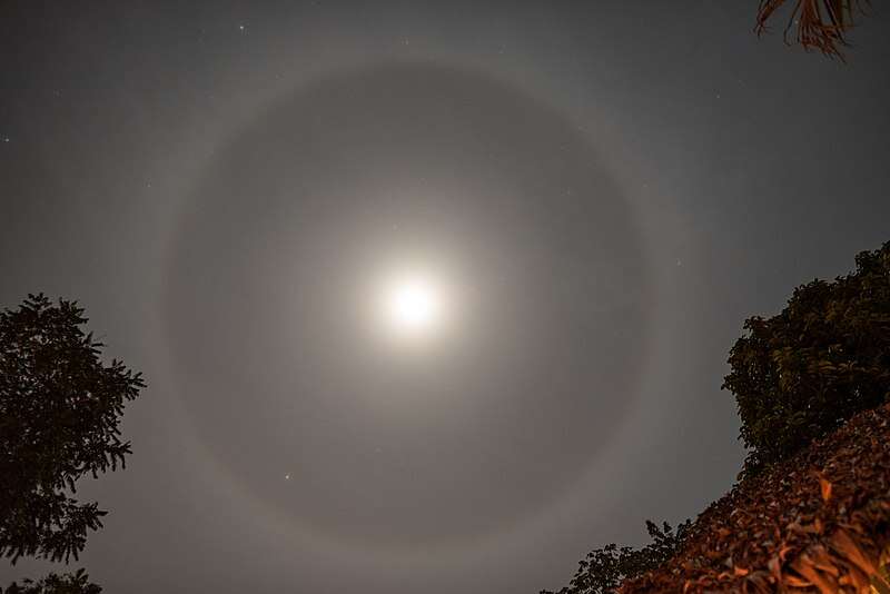 ירח קסום: רבים ברחבי העולם, וגם כאן בישראל, שנשאו השבוע את עיניהם לשמיים שמו לב להילה (טבעת) לבנה ולא שגרתית מסביב לירח. מדובר בתופעה שמתרחשת בכל שנה בגלל ענני נוצה קלים גבוהים מאוד, אבק, אדים וגבישי קרח שמצויים באטמוספירה.
