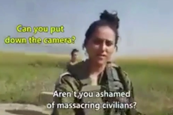 "את לא מתביישת בטבח אזרחי? את טרוריסטית ואני אצלם אותך". כך הטיחה פעילת שמאל בחיילת צה"ל בסרטון שצולם ליד הגבול בעזה.