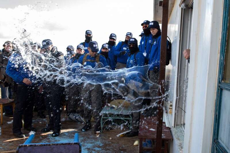 אבנים, מקלות, גידופים - וזרמי מים על השוטרים // צילום: אי.פי.אי