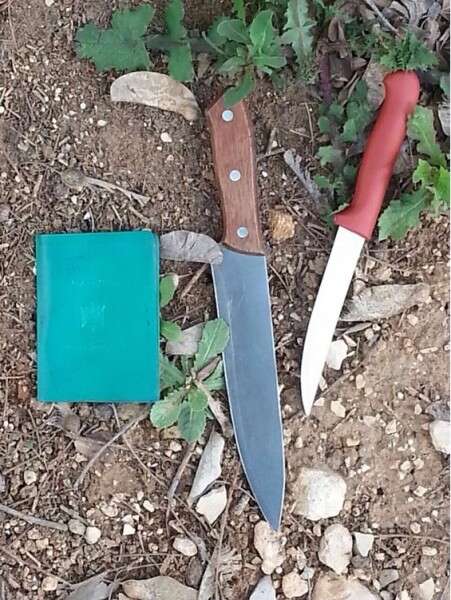 הסכינים שנמצאו אצל הקטינים הפלשתינים בשער בנימין // צילום: דובר צה"ל