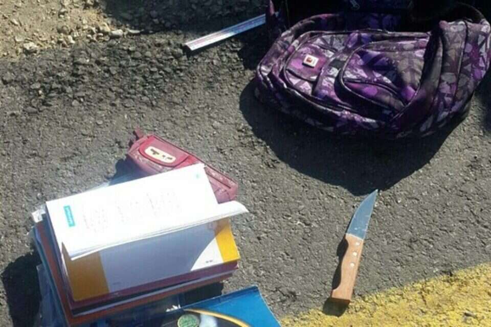 ילקוטים וסכינים. במקום בדרך לבית ספר הלכה לדקור יהודים // צילום: דוברות גוש עציון