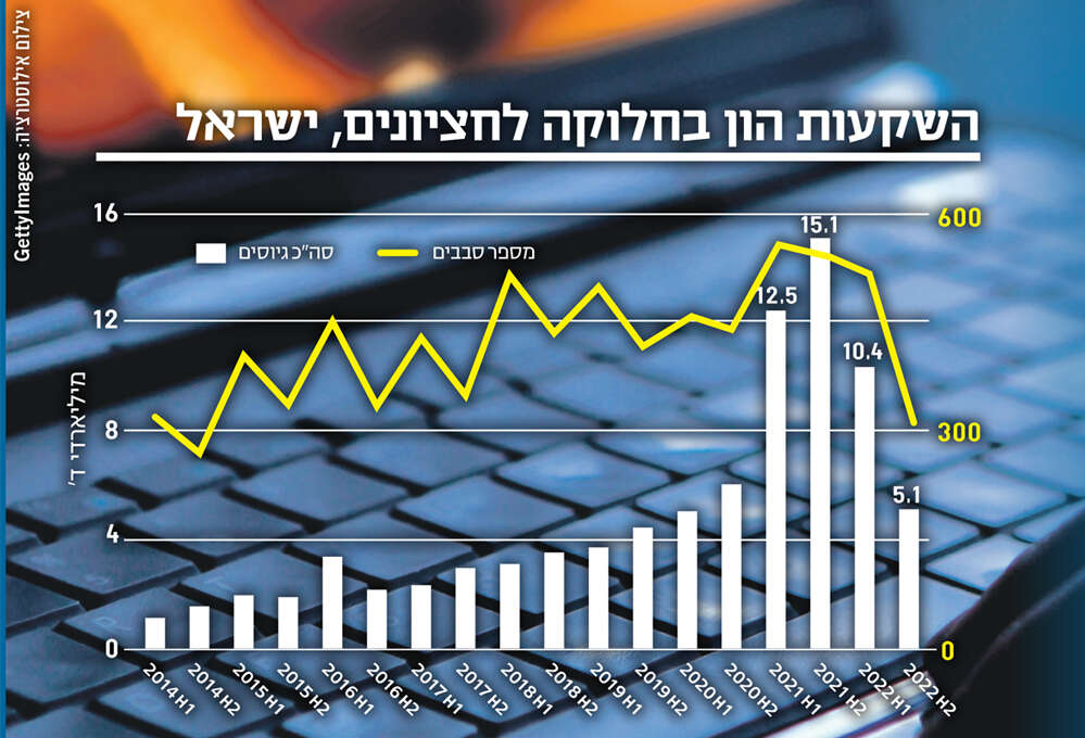 במחצית השנייה של 2022 כבר צנח היקף ההשקעות בכ־50% - מכ־10 מיליארד דולר בחצייה הראשון של השנה לכ־5 מיליארד דולר בחצייה השני, בדומה להיקף ההשקעות סביב תחילת העשור הנוכחי.