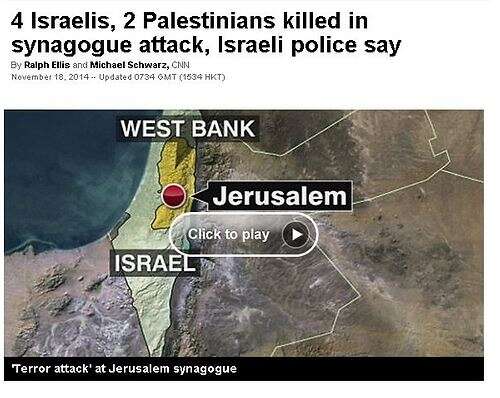 אתרי חדשות נוספים לא חסכו בסיקורם המוטה. ב-CNN הופיעה הכותרת המקוממת: "ארבעה ישראלים ושני פלשתינים נהרגו בירושלים, לדברי המשטרה". אתר החדשות הקנדי CBC אף הרחיק לכת כשדיווח: "משטרת ירושלים ירתה בשני בני אדם לאחר שכנראה התרחשה תקיפה בבית כנסת".