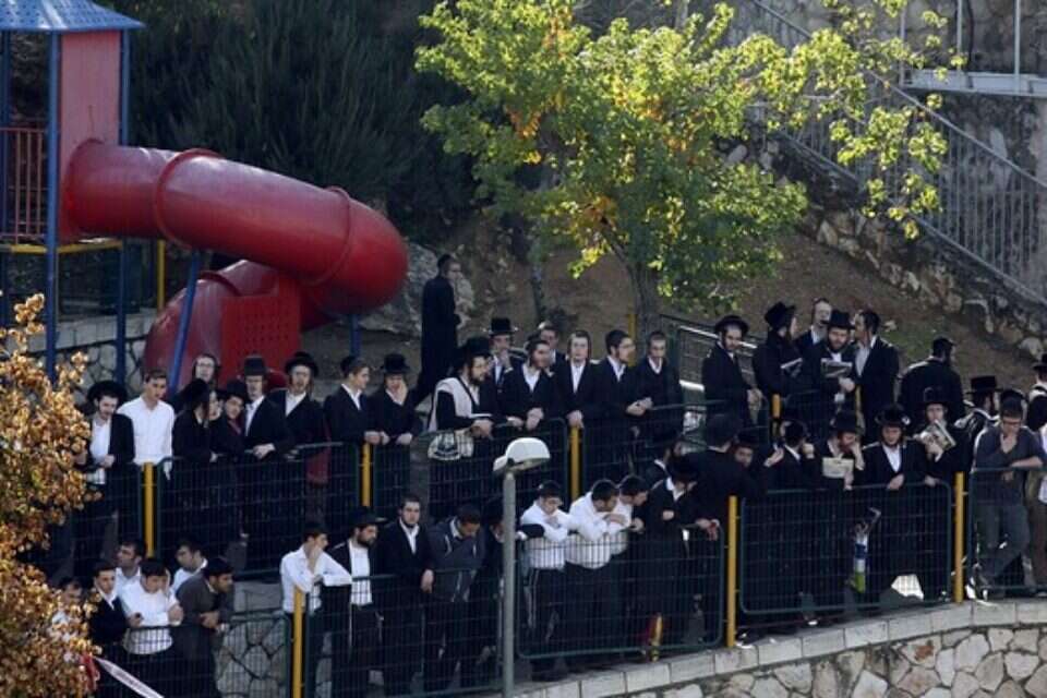 צילום: אי.אף.פי // התגודדות מחוץ לבית הכנסת