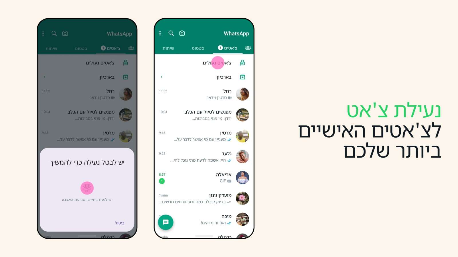 נעילת הצ'ט בוואטסאפ // צילום: יח"צ