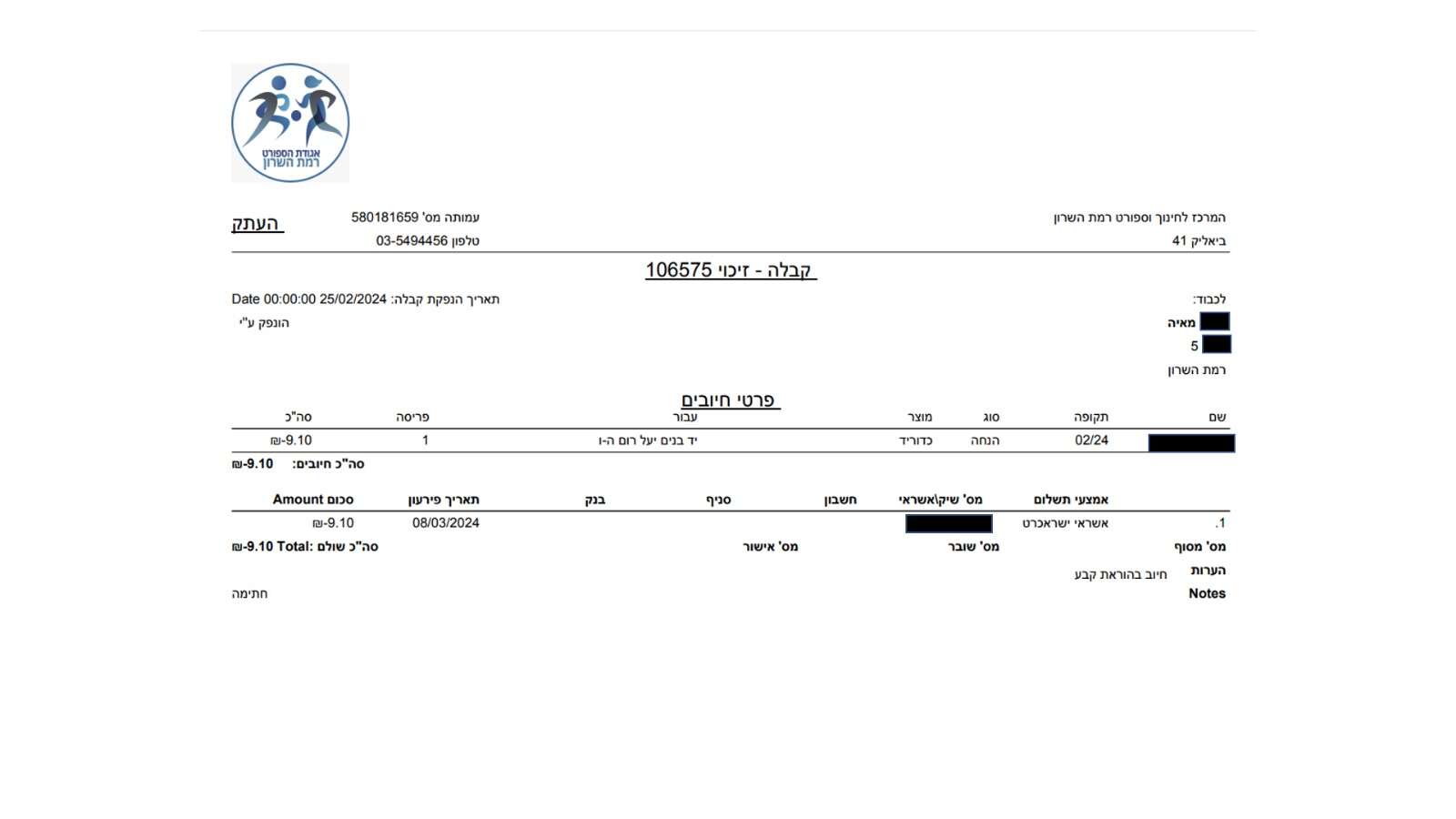 ד', תושב רמת השרון, מספר כי לאחר שרשם את שלושת בניו לחוגים שונים באגודת הספורט העירונית באמצעות יצירת קשר טלפוני ותשלום באשראי, הוא שם לב כי הקבלה אותה האגודה שולחת, דרך חברת סליקה צד שלישי בשם "קומפיט" (Compete) – היא בעצם לינק לענן, דרכו ניתן לגשת לכל החשבוניות שמוציאה האגודה ללקוחותיה.