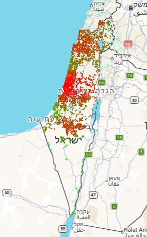 - מפת האזעקות מאז תחילת מבצע "שאגת הארי"