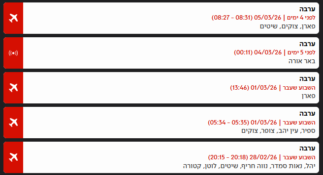 נתונים עדכניים של פיקוד העורף ואפליקציית "צופר" (נכון ליום שני ב-13:15) חושפים רשימה מצומצמת של תשעה יישובים באיזור הערבה שמצליחים לשמור על מאזן נדיר של 0 אזעקות מאז פרוץ מבצע "שאגת הארי".