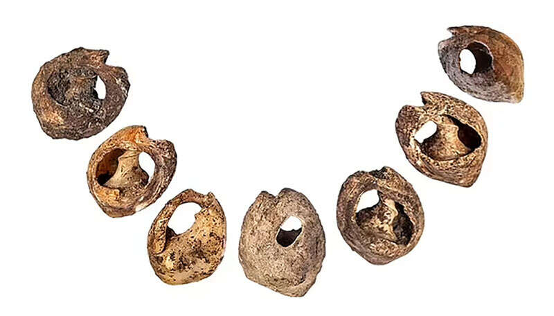 החרוזים שעברו בדיקה מתוארכים לתקופה שהיא בת 142-150 אלף שנה והם התגלו על ידי צוות חוקרים מאוניברסיטת אריזונה שחקרו את המערה בשנים 2014-2018. בכל אחת מהקונכיות ישנו חור ועל פי הסימנים שעליהן אנשים ענדו אותן כשרשרת על הצוואר או כעגילים בתנוכי האוזניים.