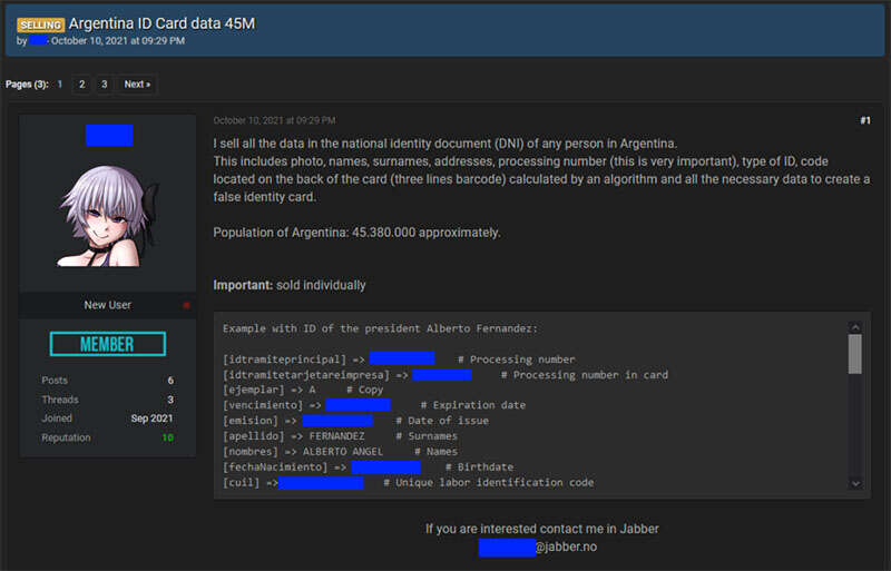 "ייתכן ובימים הקרובים אפרסם את הפרטים של מיליון או שני מיליון אזרחים" אמר ההאקר שמחזיק בידיו פרטים של 45 מיליון אזרחי ארגנטינה. זוהי הפריצה השנייה בארגנטינה לאחר שב-2019 נפרץ מאגר מידע הכולל את אנשי הפוליטיקה וכוחות הביטחון.