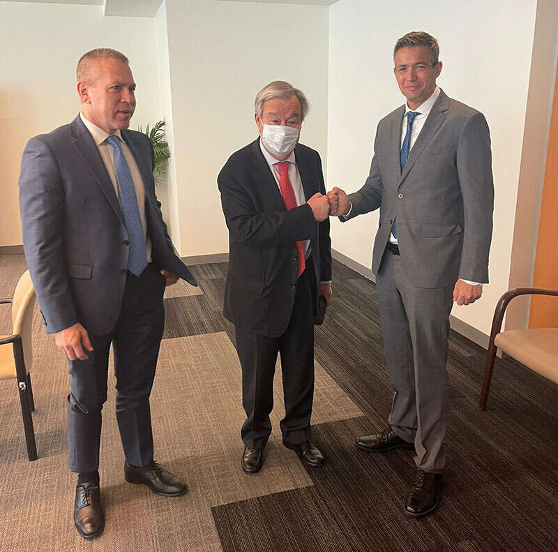 שר התקשורת יועז הנדל ושגריר ישראל באו״ם גלעד ארדן נפגשו בשישי בצהריים עם מזכ״ל האו״ם אנטוניו גוטרש, במטרה לבחון את הדרכים להטלת אחריות משפטית, אפילו אם חלקית - על חברות האינטרנט והרשתות החברתיות למנוע תכנים אנטישמיים והסתה. סוכם כי ישראל תכלל בקבוצת המדינות העוסקות בנושא עם האו"ם.